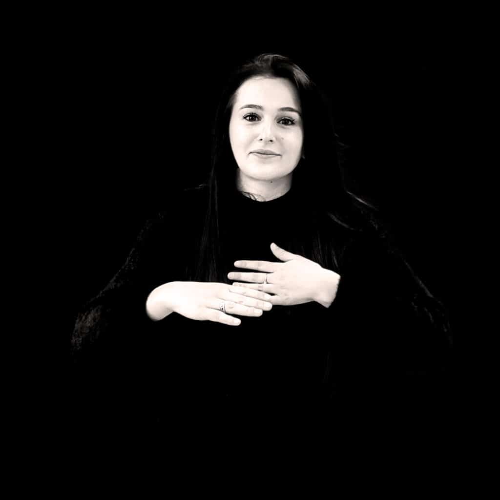 Apprendre la langue des signes française avec MLSF, c’est aussi s’intéresser à la Culture Sourde, très riche avec des centaines et des centaines de signes à apprendre. Par exemple, lors de vos premières séances, le formateur vous attribuera un signe, qui est un signe significatif de vous, comme vous pouvez le voir avec Méryl sur le visuel.